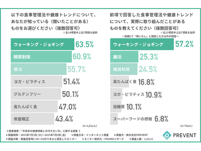 健康に対する意識が高まる中で、『ウォーキング・ジョギング』や『糖質制限』といった耳馴染みの良い手法が広く認知されていることがわかります。