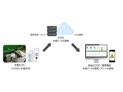 「IoT水質センサー」は、陸上・海上養殖や農業、水耕栽培、工場排水や河川環境調査など、さまざまな現場の水質データを24時間リアルタイムで管理できるシステムです。データの蓄積・可視化・分析から水質変化の予測まで対応し、水質管理を効率化します。