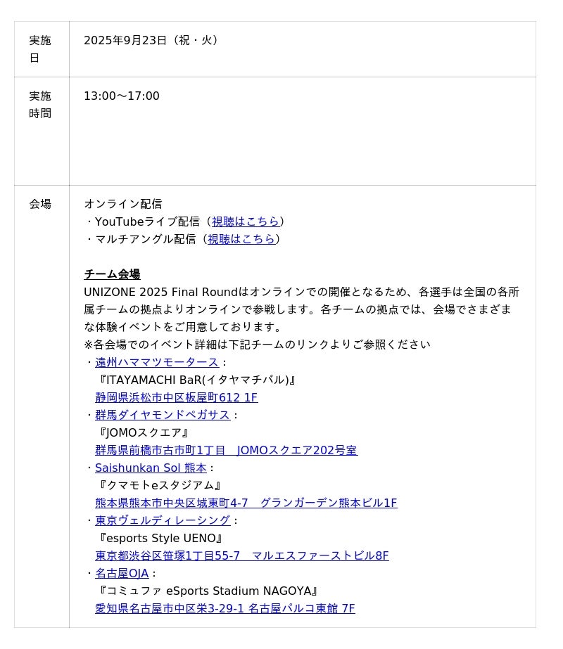 UNIZONE 2025もいよいよ最終戦へ。9月23日(祝・火)は是非リアルタイムで応援してください。各チーム拠点のお近くにお住まいの方は、是非チーム拠点で選手たちの熱量をリアルに感じながら現地でしか味わえない緊張感も合わせてお楽しみください。