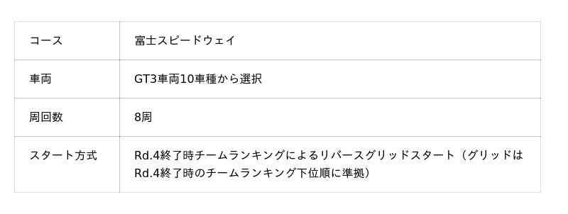 また、Rd.4に引き続きFinal Roundでも一部レースのグリッド順を視聴者投票で決める形を採用。是非投票にご参加いただき、当日はリアルタイムでレースをご観戦ください。