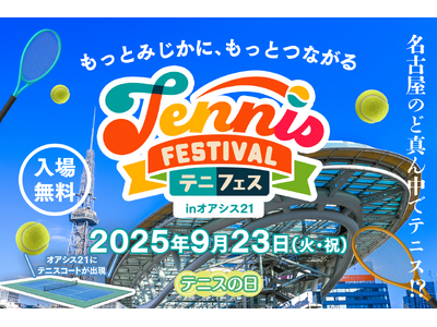 2025年9月23日(火・祝)の「テニスの日」に、名古屋のランドマーク「オアシス21」にて、入場無料の大型テニスイベント『テニフェス in オアシス 21』を開催いたします。