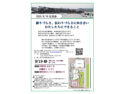 公益社団法人3.11メモリアルネットワークは9月19日(金)14時より、CREVAおおくま(福島県大熊町)にて「3.11メモリアルネットワーク 福島交流会2025」を開催します。