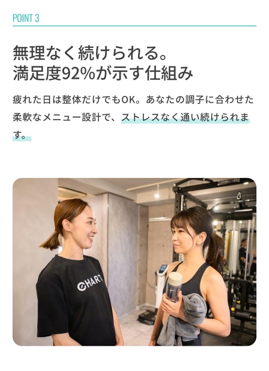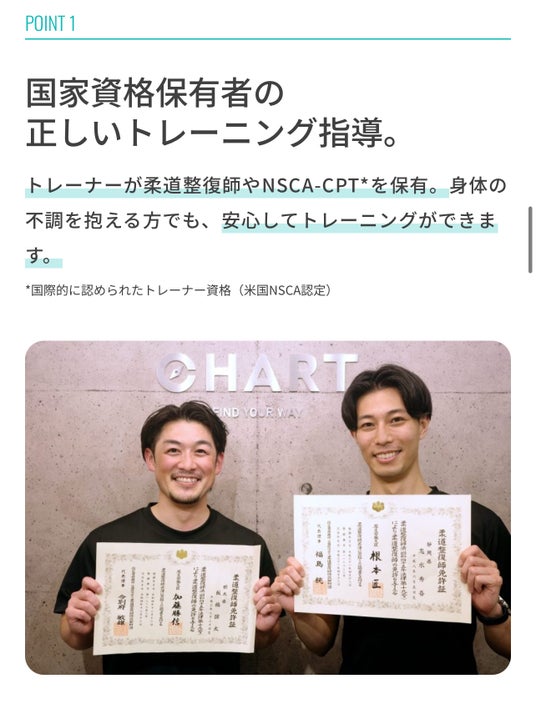 CHART株式会社(本社:東京都新宿区/代表取締役:大久保泰成)は、整体とパーソナルトレーニングを掛け合わせた新しい形のフィットネスジム「CHART」を展開しており、このたび