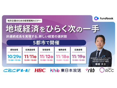 M&A仲介を行う株式会社fundbook(本社:東京都港区、代表取締役: 渡邊和久、読み:ファンドブック、以下「当社」)は、成長戦略と地域経済活性化について解説する無料セミナーを2025年10月から5都市で、各開催地域の放送局と連携し開催いたします。