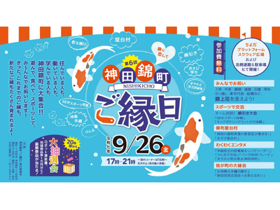 2025年9月26日(金)に神田錦町にあるちよだプラットフォームスクウェア広場および北側道路&駐車場(神田錦町3-21および15)にて、第六回 神田錦町 「ご縁日」が開催されます。