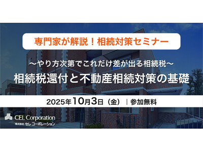 株式会社セレ コーポレーション(本社:東京都中央区京橋、代表取締役社長:山口 貴載)は、2025年10月3日(金)に東京都中央区京橋本社にて、相続税還付の仕組みや土地評価や活用方法の具体例が学べる「相続税還付と不動産相続対策の基礎セミナー」を開催します。