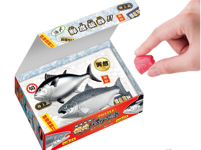 新商品『鮮度抜群!!解体パズルセット 本マグロ&キングサーモン』は、ばらばらの全33パーツを組み立てると「本マグロ」と「キングサーモン」の2本が完成するパズルです。人気の魚が2本入った豪華なセットです。現在、本マグロは「一本買い!!本マグロ解体パズル」、キングサーモンは「一本買い!!キングサーモン解体パズル」の商品名にて販売中ですが、同商品は2本をセットにし、これまでにない“鮮度抜群”を醸し出す特別仕様になっています。