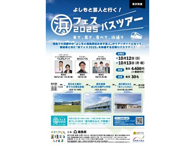 福島県では、2025年10月12日(日)、13日(月・祝)の2日間、東京駅発着の日帰りバスツアー企画「よしもと芸人と行く!浜フェス2025バスツアー」を開催いたします。