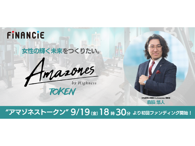 株式会社フィナンシェ(代表取締役:國光宏尚、以下フィナンシェ)は、株式会社Wellness Land(代表:森脇悠人)が展開する女性専用24時間ジム「Amazones(アマゾネス)」のトークンプロジェクト「アマゾネストークン@森脇悠人」が、FiNANCiEにてコミュニティを公開し、9月19日(金)18時半より初回ファンディング申込がスタート行うことを決定したことをお知らせします。