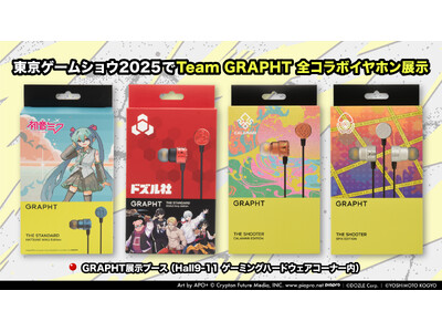 このたび『GRAPHT』は、2025年9月25日(木)~28日(日)に開催される東京ゲームショウ2025(TGS2025)のGRAPHT展示ブース(9-11 Hall/ゲーミングハードウェアコーナー内)において、「初音ミク」、「ドズル社」、よしもとゲーミング所属「カラマリ」、「SPIX」コラボモデルのGRAPHTイヤホン計4モデルを一挙展示いたします。(イヤホンをご試聴いただくことはできませんのでご了承ください)