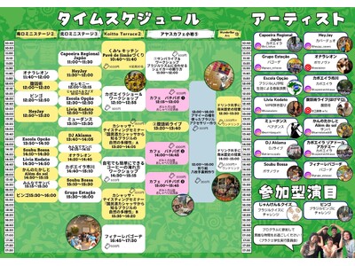 「食・挑戦・体験」をテーマに、ブラジル料理や音楽・ダンス、伝統格闘技、子ども遊びなどさまざまなブラジル文化を存分にご堪能いただけます。