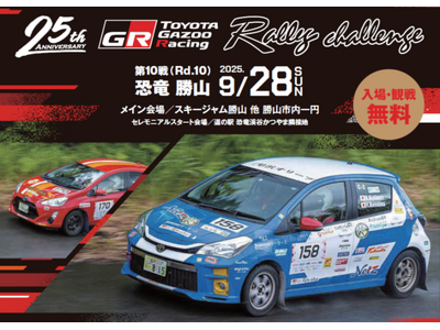 スキージャム勝山(福井県勝山市)をメイン会場として、2025年9月28日(日)に「TOYOTA GAZOO Racing RallyChallenge 2025 in 恐竜勝山」が開催されます。RallyChallengeは、トヨタ自動車が主催するラリー大会で、全国12か所で開催されています。勝山大会は2025年シリーズ第10戦となり、勝山市としては平成28年の初開催から今回が7回目の開催となります。ワインディングや特設コースを激走する大迫力のラリーカーや、サービスパークでの整備の様子などラリーの醍醐味を満喫できるほか、イベント会場では子どもも大人も楽しめる様々なラリー体験コンテンツと、地元マルシェやキッチンカーが出店する飲食エリアが展開されます。メイン会場のスキージャム勝山を中心に、勝山市全体がラリー一色に染まる1日となります。