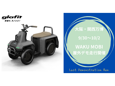 電動パーソナルモビリティの開発・製造・販売を手がけるglafit株式会社(読み:グラフィット、本社:和歌山県和歌山市、代表取締役社長CEO:鳴海 禎造、以下、glafit)が、大阪・関西万博 ロボットエクスペリエンスに展示中の四輪型特定小型原動機付自転車(以下、四輪型特定原付)の屋外デモンストレーションを9月30日(火)から10月2日(木)に行う事が決定しましたのでお知らせいたします。今回のデモンストレーションが、大阪・関西万博でのWAKU MOBIの最後のデモンストレーション走行となります。