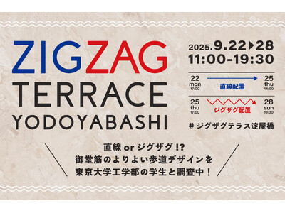東京大学工学部都市工学科の4年生が中心になって企画した滞在空間配置の社会実験「ジグザグテラス淀屋橋」が、大阪・御堂筋の歩道上で実施される。場所は今年6月に開業した淀屋橋駅直結の最新複合施設「淀屋橋ステーションワン」前の歩道。期間は9月22日(月)から同28日(日)までを予定している。
