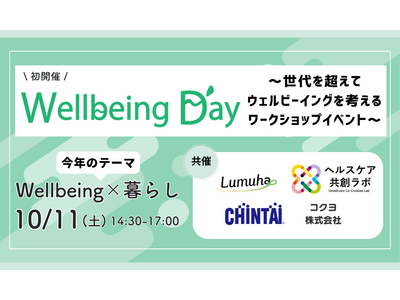 ルムア株式会社(東京都/代表:佐藤 唯)は、2025年10月11日(土)「Wellbeing Day ~世代を超えてウェルビーイングを考えるワークショップイベント~」を初開催します。本イベントでは、NTTデータ ヘルスケア共創ラボ、株式会社CHINTAI、コクヨ株式会社(順不同)と共催し、“心身のバランスの整え方を学び、日々に活かす”をテーマに、Wellbeing×「暮らし」に焦点を当てた参加型ワークショップを開催いたします。