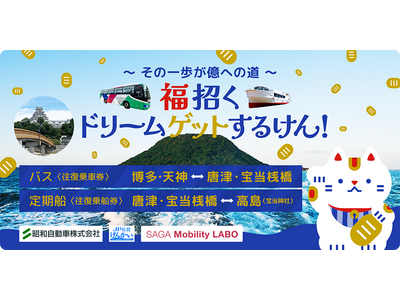 トヨタファイナンシャルサービス株式会社(名古屋市、代表取締役社長:頃末広義)が運営するおでかけアプリ「my route」は、昭和自動車からつ号の往復乗車券と佐賀玄海漁業協同組合高島航路の往復乗船券がセットになった「福招くドリームゲットするけん!」を販売いたします。