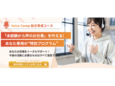 2025年9月、オンラインボイススクール「Voice Camp」では、“声を生かしたお仕事”を目指す方々に向けた『総合育成コース』を開講します。初心者の方にも安心してスタートしていただけるよう、スキル・プロフィール・実績のすべてを総合的にサポートする充実の内容をご提供いたします。