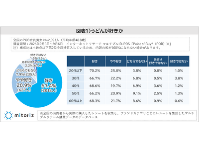 株式会社mitoriz(本社:東京都港区、代表取締役社長:原田光幸)は、消費者購買行動データサービス「Point of Buy(R)(以下、POB)」の会員2,993人を対象に「うどんに関する調査」を実施しました。