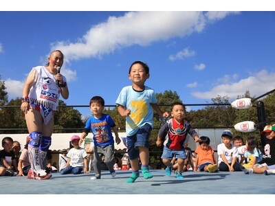 おごおりば元気にするバイ!小郡市民まつりの子ども向け新企画・ちびっこプロレス教室の参加者を募集します。リングの上で、九州プロレスの選手と楽しく体を動かそう!