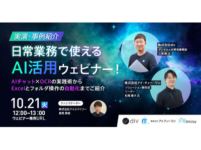 AIポータルメディア「AIsmiley」は、2025年10月21日(火)12時から日常業務で使えるAI活用をテーマにウェビナーを開催します。