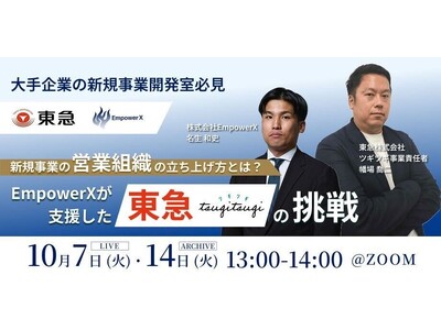 クライアントの事業成長に営業支援で伴走する株式会社EmpowerX(本社:東京都品川区、代表取締役:大野 将也)は、東急株式会社の新規事業「ツギツギ」の立ち上げをテーマにした対談ウェビナーを2025年10月7日(水)、10月14日(水)に開催することをお知らせします。