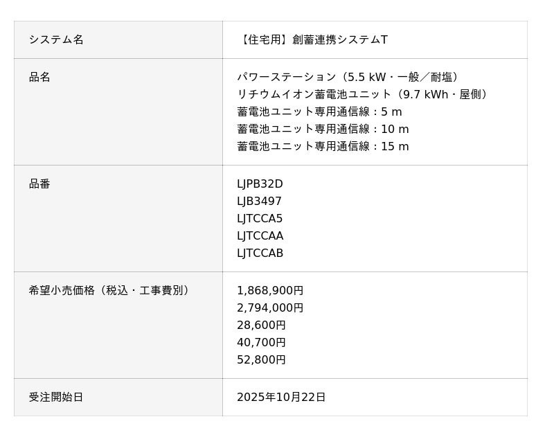 ▼[プレスリリース]【住宅用】創蓄連携システムTを新発売(2025年9月24日)