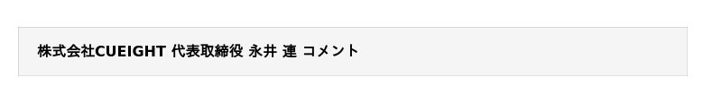 今回のプロジェクトは、素晴らしいパートナー企業と共に取り組むものであり、その協業が大きな力となって未来を切り拓いていきます。株式会社CUEIGHTは、これからも多くの挑戦を支えながら、エンターテインメントの新たな可能性を追求してまいります。