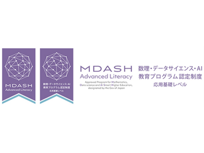 本学では、全学生が数理・データサイエンス・AIのリテラシーレベルと応用基礎レベルを学ぶ体制を整えており、令和5年度には文部科学省より「数理・データサイエンス・AI教育プログラム(リテラシーレベル)」として認定されていました。今回の「応用基礎レベル」への選定は、共通コア科目「数理・データサイエンス・AI入門」に加えて、各学科毎に以下の科目について「応用基礎レベル」の修了要件を満たすものとして認定されたものです。