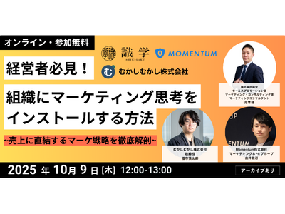 Momentum株式会社(本社:東京都港区、代表取締役社長:細井康平)は10/9(木)に株式会社識学(本社:東京都品川区、代表取締役社長:安藤 広大)、むかしむかし株式会社(東京都中野区、代表取締役:木村明日香)と「組織にマーケティング思考をインストールする方法」を開催します。