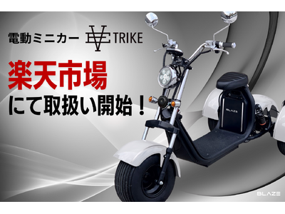 株式会社ブレイズ(愛知県名古屋市、代表取締役:市川秀幸、以下ブレイズ)は、楽天ショップ内「ブレイズ公式通販サイト」にて、3輪電動ミニカー「EV TRIKE(EVトライク)」の販売を開始いたしました。これまで楽天ショップでは、2輪の電動モビリティを中心に展開してきましたが、3輪タイプの電動ミニカーを取り扱うのは今回が初となります。