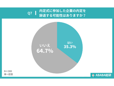 「内定式に参加した企業の内定を辞退する可能性があるか」を尋ねたところ、「はい」と回答した就活生が35.3%にのぼりました。3人に1人以上は内定式に参加しても入社意思を固めていないことが明らかになりました。