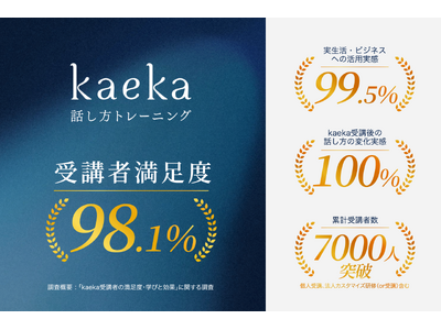 話し方トレーニングサービス「kaeka」を提供する株式会社カエカ(本社:東京都中央区、代表取締役社長:千葉佳織)は、受講者を対象に実施した最新調査の結果を発表しました。本調査では、kaeka受講者の98.1%が「満足」と回答し、99.5%が「実生活・ビジネスでの活用を実感」、さらに100%が「話し方・伝え方にポジティブな変化があった」と答えるなど、高い成果が明らかになりました。
