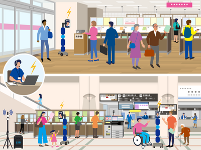 昨年度に実施した実証※1から発展させ、大田区本庁舎内だけでなく千束特別出張所にもnewmeを配置し、一拠点から複数箇所のnewmeを遠隔操作して「遠隔区民サービス」の実証を行います。