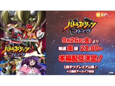 株式会社バンダイナムコピクチャーズ(本社:東京都杉並区、代表取締役社長:佐藤弘幸)は、アニメ『バトルスピリッツ ブレイヴ』を期間限定無料配信いたします。YouTubeチャンネル「【公式】BN Picturesチャンネル」にて、9月26日(金)より全50話を、毎週金曜日21時から1話ずつプレミア公開、さらに2週間アーカイブ配信いたします。