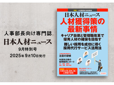 人事専門誌「日本人材ニュース」を発行する株式会社日本人材ニュース社(東京都千代田区、代表取締役:吉越利成)は、2025年9月10日に人事専門誌「日本人材ニュース 9月特別号~人材獲得策の最新事情」を発行しました。