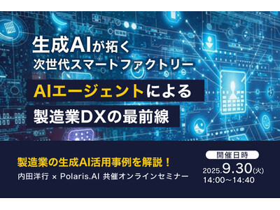 Polaris.AI株式会社(本社:東京都、代表取締役:徳永優也)は、データ活用・ICT基盤構築に豊富な実績を持つ株式会社内田洋行様と、製造業におけるAI活用とDXをテーマにウェビナーを共催します。