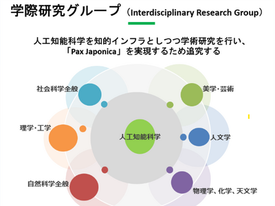 弊研究所では2023年4月に「学際研究グループ(Interdisciplinary Research Group)」を正式に立ち上げ、博士課程修了ないし博士号取得者である国内外の研究者たちにより、「パックス・ジャポニカ(Pax Japonica)」の実現に向け様々な角度からの研究を実施しています。人工知能科学を知的インフラとしつつ学術研究を行い、「Pax Japonica」を実現に向けて、特定の科学分野に偏ることなく学術的な目線で研究しています。
