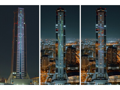 大阪・関西万博の開催にあわせ、大阪ベイエリアのランドマークである「さきしまコスモタワー(大阪府咲洲庁舎)」の北側外壁の一部をレーザーマッピングで彩る光のアート「SAKISHIMA LIGHTING ART」を、10月13日 (月・祝)まで実施中です。