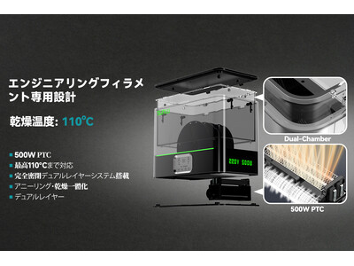 SUNLUは、フィラメントの「乾燥」と「アニーリング」を1台で実現する次世代マシン「E2」を、CAMPFIREにて公開しました。レビュー動画も順次公開され、3Dプリントユーザーの注目を集めています。