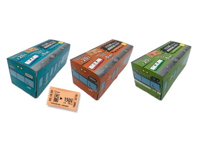 スカイブルー・オレンジ・ウグイスの3色展開で103系車両カラーを再現、個包装は切符をイメージして「難読駅名」などの遊び心を加え、関西らしい「ミックスジュース?」の味わいを詰め込みました。