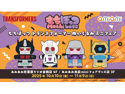 『もちぼっつ トランスフォーマー ぬいぐるみ ミニフェア』が、2025年10月10日(金) ~ 2025年11月9日(日)に「あみあみ秋葉原ラジオ会館店 4F」「あみあみ池袋miniフェアグッズ店 3F」にて開催。