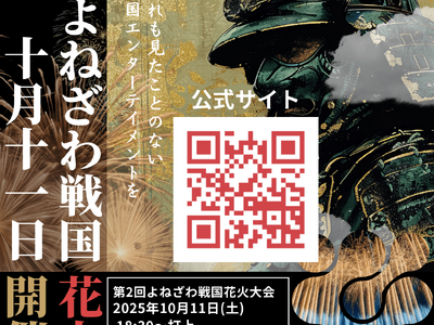 「よねざわ戦国花火大会」は、戦国時代の武将・上杉謙信公ゆかりの地・米沢で開催される、全国で唯一「戦国」をテーマにした花火大会です。「ドローン」×「花火」×「戦国エンタメ」で観客を魅了します。同時に開催される「よねざわ肉の陣」はオリジナリティ溢れる肉料理から「肉将軍」を決める食のイベントも楽しめます。