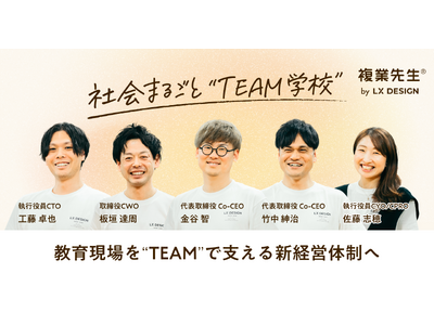 複業で先生をしたい外部人材と学校をつなぐ『複業先生(R)』を提供する株式会社LX DESIGN (本社:東京都千代田区、以下当社) は、 経営体制のさらなる強化、学校現場を“TEAM”で支えることを目的に、株主総会での決議を経て、2025年9月25日付で代表取締役2名と取締役1名、執行役員2名のチーム経営体制となりましたことをお知らせいたします。
