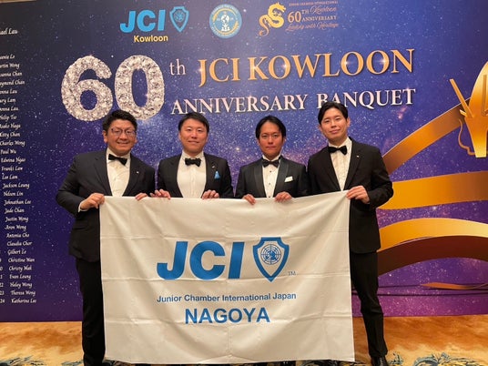 2025年8月2日、香港にて開催された九龍JC 創立60周年記念式典・晩餐会に、名古屋JCからは平岩理事長、富永副理事長、荒川常任、坂口APDC財政顧問が出席しました。