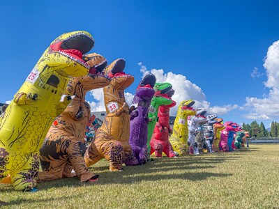 福井県立恐竜博物館から車で約10分の高原リゾート「スキージャム勝山(福井県勝山市)」では、法恩寺山有料道路無料化3周年を記念し、2025年10月12日(日)に「第6回ティラノサウルスレース in スキージャム勝山」が開催されます。「恐竜のまち 勝山」にちなみ、ティラノサウルスの着ぐるみを身にまとった参加者がゲレンデを駆け上がる迫力満点のレースは、観る人も参加する人も笑顔になる人気イベントです。
