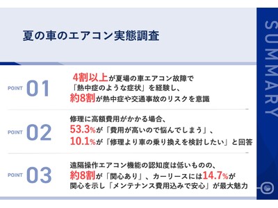 - 01|4割以上が夏場の車エアコン故障で「熱中症のような症状」を経験し、約8割が熱中症や交通事故のリスクを意識