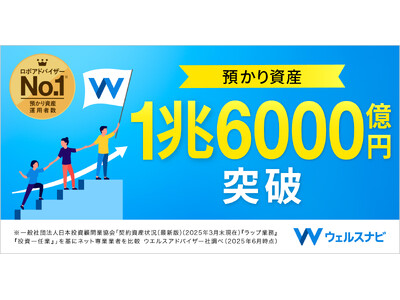 預かり資産・運用者数 国内No.1ロボアドバイザー(※)「ウェルスナビ」を提供するウェルスナビ株式会社(本社:東京都品川区、代表取締役CEO:柴山和久、以下「当社」)は、2016年7月の正式リリースから約9年2カ月となる2025年9月26日時点で、預かり資産1兆6,000億円を突破したことをお知らせします。