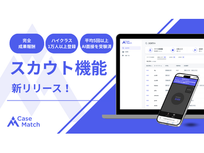 AI面接プラットフォーム「CaseMatch」は、新卒・中途採用向けのスカウト機能を正式にリリースしました。本機能は1万人以上の登録者から、AI面接結果を基にピンポイントで候補者へアプローチ可能です。