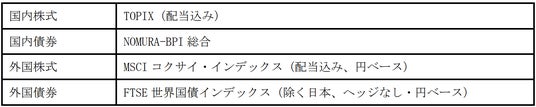 ※1 資産ごとにつぎの指数を基本資産配分で合成したものを参考指数とします。