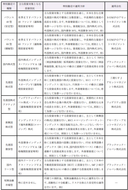 9種類のファンドを自由に組み合わせることが可能です。選択できる特別勘定は下表のとおりです。